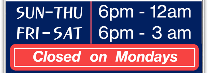 Sunday - Thursday : 6pm ~ 12am
